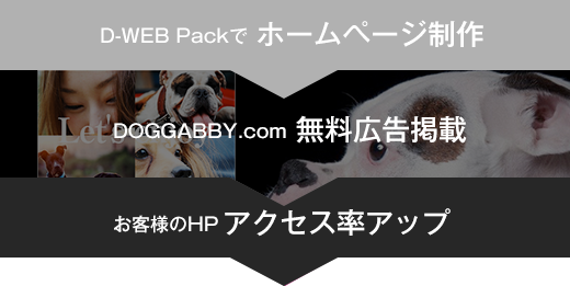 また、愛犬ポータルサイトDOGGABBY.comとの連携でお客様のHP無料告知掲載がパッケージされており、愛犬ユーザーにアピールでき集客に繋がります。WEB Packはお客様のビジネスを広げていくパートナーになるでしょう。