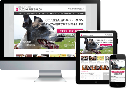 ペットサロン、ペット幼稚園などペット業様向け「予約受付け」「ネット販売」のできるオリジナルホームページが